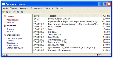 Отличная программа для магазина или торговой точки. Обеспечивает все необходимые функции и при этом настолько проста в использовании, что даже неопытный пользователь освоит ее за пять минут. Ведет регистрацию продаж и закупок, остатков товара, прихода и расхода денег. Может работать на одном компьютере, в локальной сети или через интернет, работает со сканерами штрихкода, имеет встроенную гибкую систему скидок, разделение прав пользователей, генерирует отчеты сразу в Word!