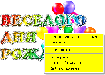 У друга день рождения, не знаете как поздравить? В этой программе есть большой список поздравлений как для СМС так и больших красивых стихов. Ну стихи и поздравления это не все что умеет программа. Вы можете украсить свой рабочий стол красивыми анимациями. Тортиками, подарками и многими другими, в базе хорошее количество анимаций для рабочего стола. Кстати можно коллегам на работе на компьютер установить в их день рождения, все таки хорошо сделать приятное, а красивая анимация на рабочем столе только поднимет настроение пользователю компьютера.