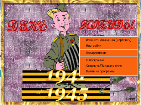 День Победы главный праздник в России. именно 9 Мая Россия победила в Великой Отечественной Войне. И к празднику День победы было решено выпустить новую программу "Поздравления с Днем Победы". Программа содержит в себе красивые открытки на рабочий стол, различные анимации на рабочий стол, а также набор поздравлений к Дню Победы.