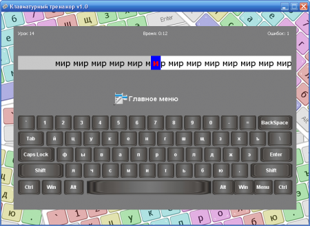 Небольшая бесплатная программа для обучения быстрой печати и изучения раскладки клавиатуры компьютера. В программе имеются как уроки русской раскладки, так и английской раскладки клавиатуры. Если Вы решили научиться быстро печатать, то эта программа будет незаменимым (Бесплатным) инструментом для изучения клавиатуры компьютера. Маленькая, но в тоже время полезная программа должна быть у каждого пользователя компьютером.