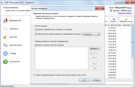 При помощи программы «СМС рассылка 2013» вы сможете оперативно поздравить с днем рождения, уведомить покупателей о специальных предложениях. Сегодня «СМС рассылкой 2013» пользуются более 5000 сетей магазинов, ,фитнес-центров и ресторанов. Понятный интерфейс, универсальный импорт, шаблоны СМС, живой предпросмотр, отправка СМС через интернет шлюз - эти возможности решат вашу задачу по рекламе через СМС комфортней.