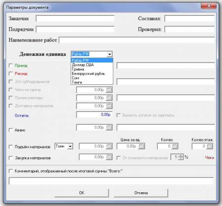 • Программа предназначена для составления смет и актов выполненных ремонтно-монтажных работ в упрощенном варианте. • Поддерживает денежные единицы: Рубль РФ, Доллар США, Гривна, Белорусский рубль, Сом, Тенге. • Учёт финансовых средств, полученных от клиента и отображение отчёта в смете. • Редактирование встроенных расценок и создание собственных баз расценок из файлов формата Excel 97-2003. Работа с несколькими базами. Для каждой базы автоматически создаётся список "Виды работ". • Смета позволяет включать материалы, необходимые для производства работ и их стоимость. • Выходные документы и расценки можно экспортировать в формат Excel 97-2003. • Работа по шаблонам, создание собственных шаблонов. • Автоматический расчёт площадей стен и полов, периметров полов и потолков, погонных метров оконных откосов . Создание до 10 схем помещений, занесение в смету данных из схем одним нажатием кнопки (Гиперссылки) с последующим отслеживанием (в случае изменения каких либо данных в схемах, объёмы пересчитываются и переписываются в тех графах сметы, где имеются гиперссылки). • Автоматически заполняемый cписок «Заказчики». Данный список позволяет быстро загружать документы, исключая поиск нужных файлов на диске. • Программа может работать одновременно с двумя документами. Второй документ открывается в режиме просмотра и служит своеобразной шпаргалкой.