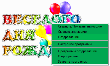 У друга день рождения, не знаете как поздравить? В этой программе есть большой список поздравлений как для СМС так и больших красивых стихов. Ну стихи и поздравления это не все что умеет программа. Вы можете украсить свой рабочий стол красивыми анимациями. Тортиками, подарками и многими другими, в базе хорошее количество анимаций для рабочего стола. Кстати можно коллегам на работе на компьютер установить в их день рождения, все таки хорошо сделать приятное, а красивая анимация на рабочем столе только поднимет настроение пользователю компьютера.