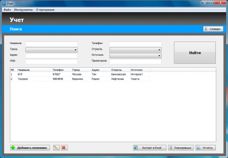 Простая программа для учета клиентов, продаж, заметок, контактов и планировщик. Программа предельно простая и не содержит ничего лишнего, позволяя освоить ее буквально в считанные минуты. Возможна многопользовательская работа по сети. При необходимости, программу можно доработать под свои нужны, с помощью бесплатного инструмента My Visual Database.
