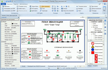 Комплексное решение для создания эвакуационных схем любой сложности. Обеспечивает автоматизацию построения планов этажей, расстановку условных обозначений и путей эвакуации, а также добавление текстовой информации. Знаки пожарной безопасности и символы, используемые на планах эвакуации, выполнены в соответствии требованиям ГОСТ Р 12.4.026-2001 и полностью представлены в программе. Данное приложение ориентировано на выполнение планов эвакуации в соответствии с ГОСТ Р 12.2.143-2009 с учетом требований Изменение №1 ГОСТ Р 12.2.143-2009 и не требует сторонних САПР решений. Возможности программы: - построение стен, окон, проемов, лестниц и других объектов; - знаки пожарной безопасности; - удобное добавление и редактирование путей эвакуации; - использование растрового изображения в качестве подложки; - использование векторного изображения плана этажа для оформления эвакуационной схемы; - сохранение в растровые форматы JPG, TIFF и др.; - сохранение в векторные форматы DXF, DWG и др. С дистрибутив программы входит инструкция по работе с программой и примеры планов эвакуации.