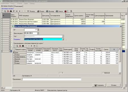 Есть возможность настроить программу на скупку предметов различного типа (драгоценности, техника, меховые изделия и т.д.) с использованием прейскуранта.